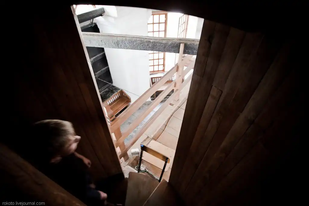 В колокольню ведёт самая узкая лестница по которой мне приходилось подниматься.