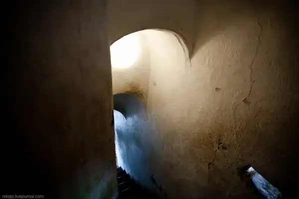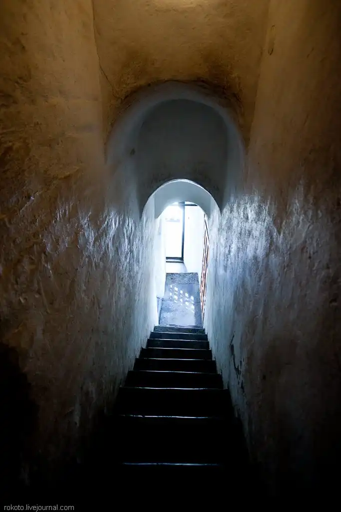 Внутри самой башни много узких проходов. Чем выше, тем уже.