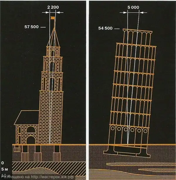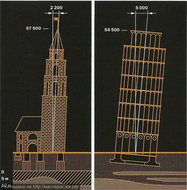 Отклонение сооружения от вертикальной оси происходило в процессе строительства и продолжалось уже после его