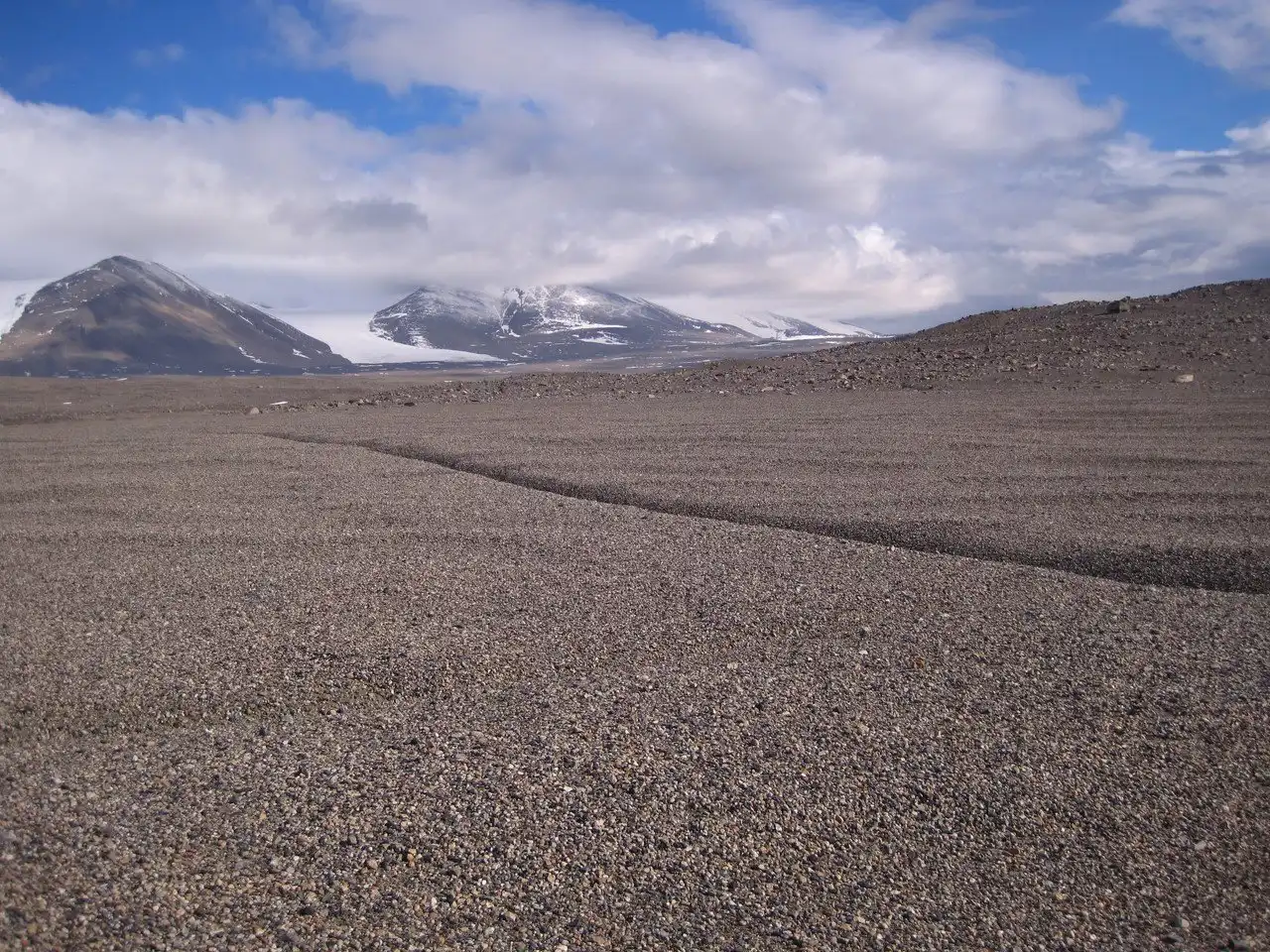 Песок, насколько можно судить по фотографиям, смерзшийся, как бетон, и образует характерный для вечной мерзлоты сетчатый узор – между частицами грунта есть некоторое количество замерзшей влаги. Там, где ее побольше, живут фотосинтезирующие одноклеточные водоросли-эндолиты – прямо внутри камней, в микротрещинах под поверхностью булыжников, на глубине от микрон до нескольких миллиметров – в зависимости от прозрачности минерала. Живут они медленно, и много им не надо – чуточку солнечного света, углекислоты из атмосферы, конденсирующихся водяных паров да микроэлементов: вот и готова какая-никакая органика. А где органика – там грибы и бактерии. На вершине этой пищевой пирамиды – три вида микроскопических, не более 1 мм, червей-нематод. В принципе есть еще мох, но он давно не работает – сублимирован и законсервирован холодом. Ждет, вмерзнув в грунт, очередного глобального потепления. Вот и всё.