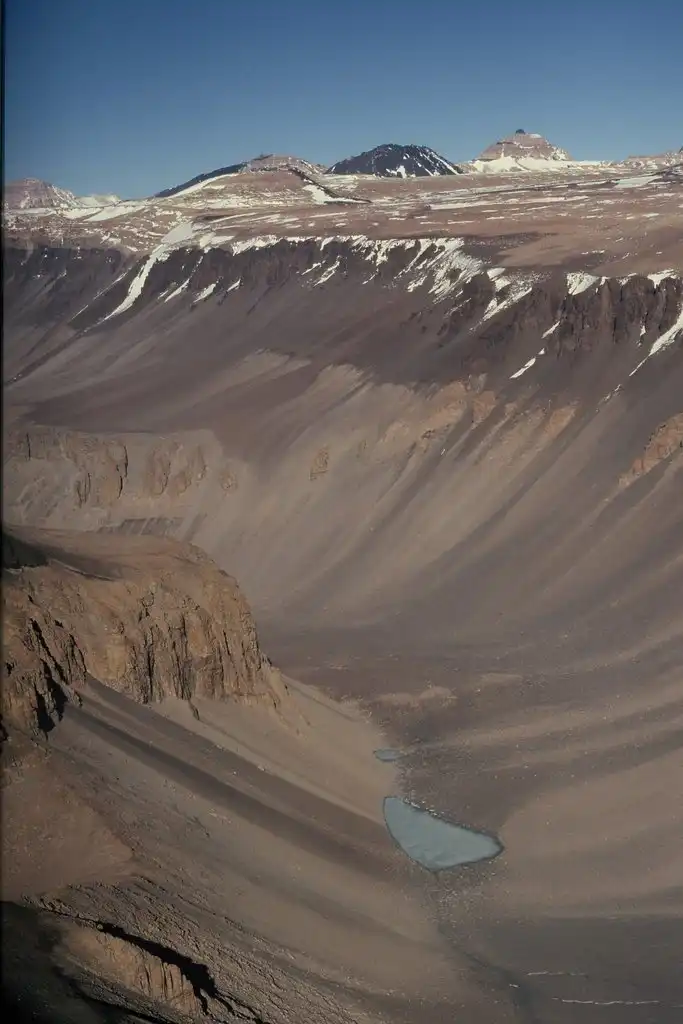 Впрочем, вода в долинах все же присутствует — в виде самых соленых на Земле озер. Поскольку температура тут иногда поднимается до нуля, они местами оттаивают, придавая месту сюрреалистический вид тропического курорта. В самом крупном из этих озер полярники даже занимаются дайвингом. Говорят, на дне лежит мумифицировавшийся труп тюленя, который непонятным образом доковылял сюда с побережья.