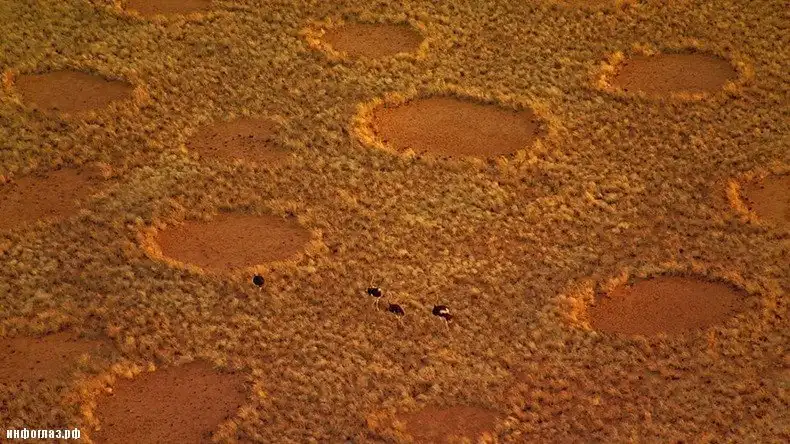 Среди гипотез происхождения волшебных кругов присутствовали даже такие экзотические версии, как «пыльные ванны», которые устраивают себе страусы, вытаптывая круги в траве.