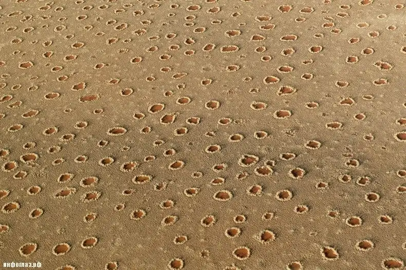 Сотни нерукотворных загадочных кругов диаметром от 2 до 10 метров на каменистой почве, во множестве встречающиеся в пустыне Намиб, по-прежнему остаются загадкой для науки. Почва в границах круга абсолютно лишена растительности, хотя по его периметру высится сочная трава, контрастирующая с остальной скудной флорой пустыни.