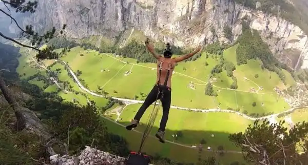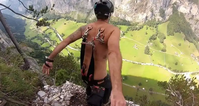 Экстримал и любитель модификаций тела Станислав Аксенов провернул трюк, от которого по коже бегут мурашки. Он прыгнул с парашютом, прицепленным к пирсингу в его спине с высоты в 400 метров. Кстати, это он же организовал прыжки со свободным падением на пирсинге.