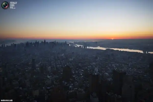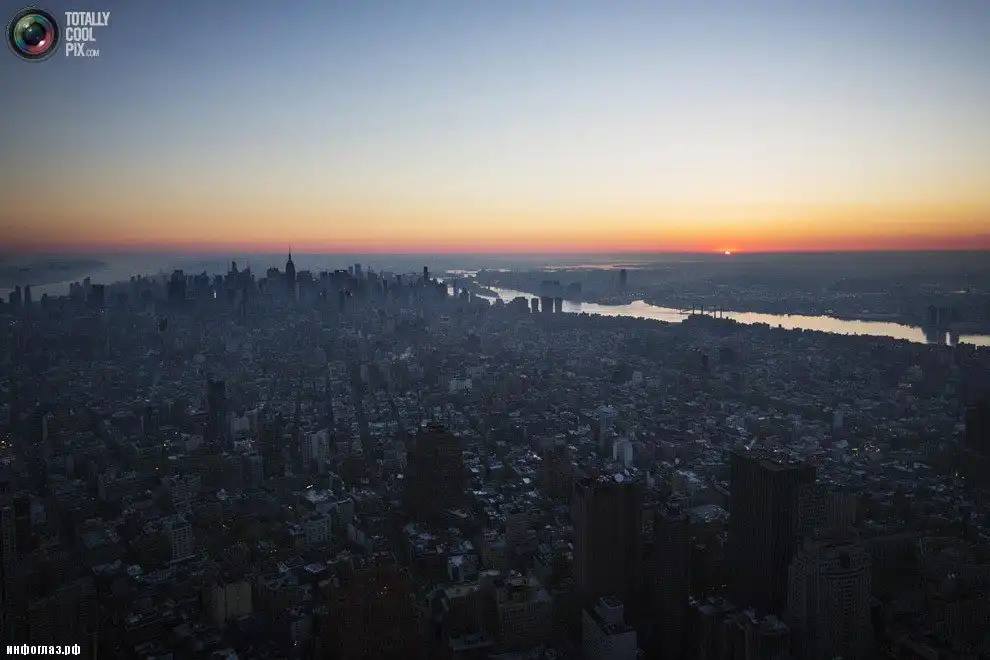 Вид окутанного туманом Нью-Йорка с вершины Всемирного торгового центра 1 на рассвете. (LUCAS JACKSON/REUTERS)