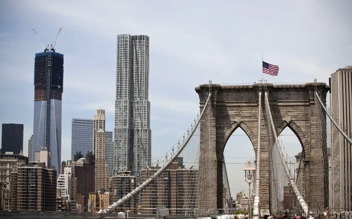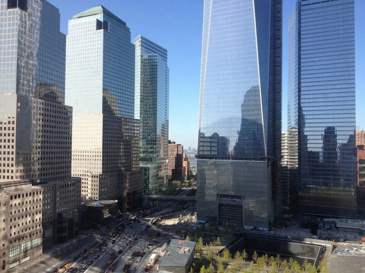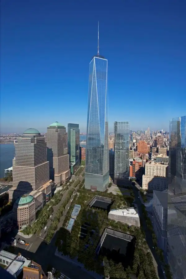 Небоскреб построен на месте башен близнецов, разрушенных 11 сентября 2001 года.