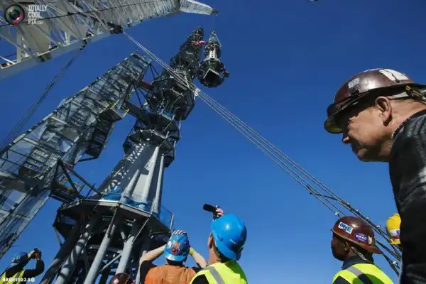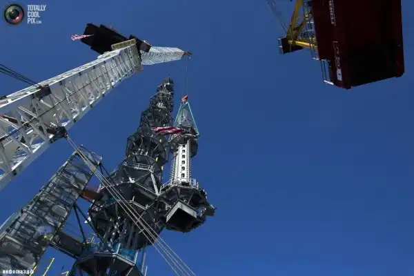 Шпиль высотой 124 метра подняли на крышу неделю назад. В пятницу утром он был окончательно установлен. Таким образом, здание стало самым высоким в западном полушарии, его высота составляет 541 метр.
