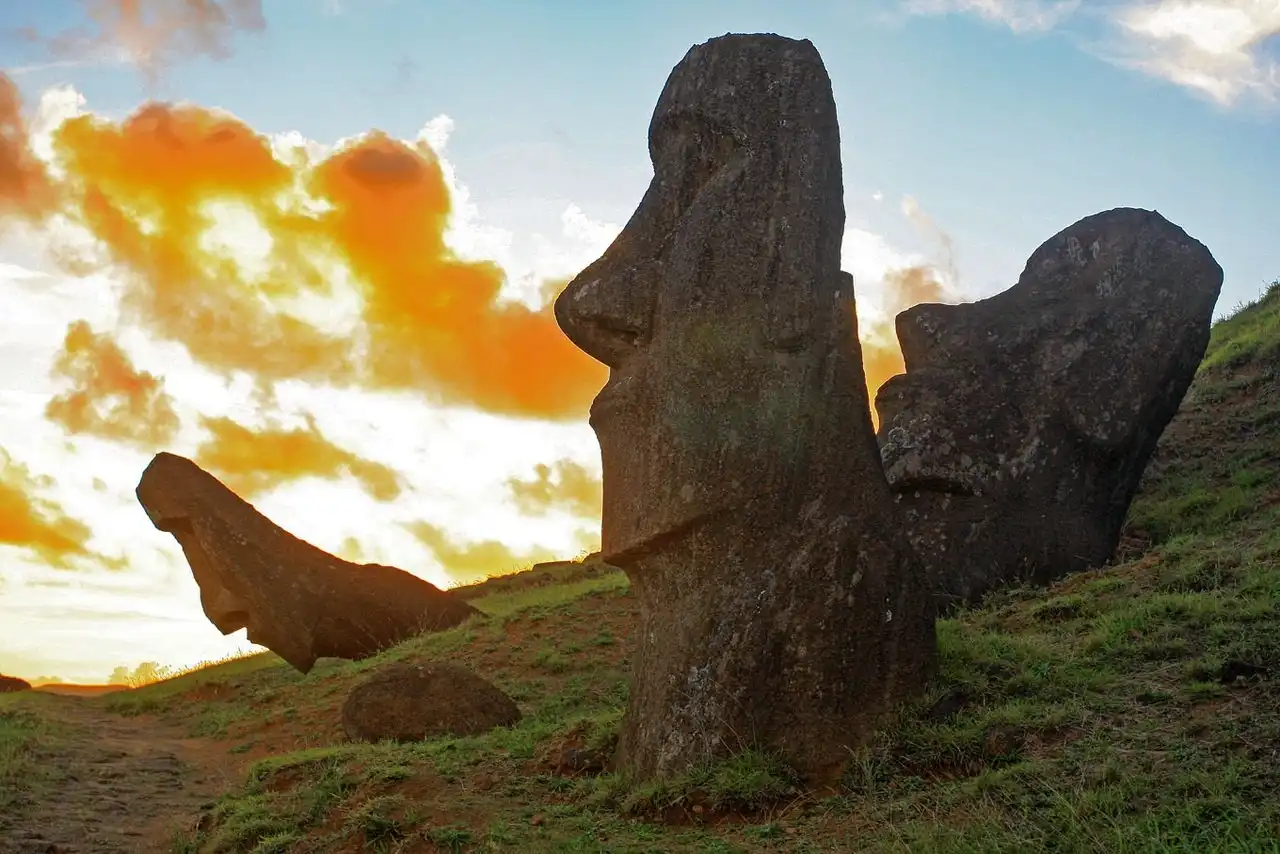 В прежние времена островитяне были убеждены, что моаи охраняют их землю и их самих от злых духов. Все стоящие моаи повернуты лицом к острову. Непостижимые, как время, они погружены в молчание. Это таинственные символы ушедшей цивилизации.