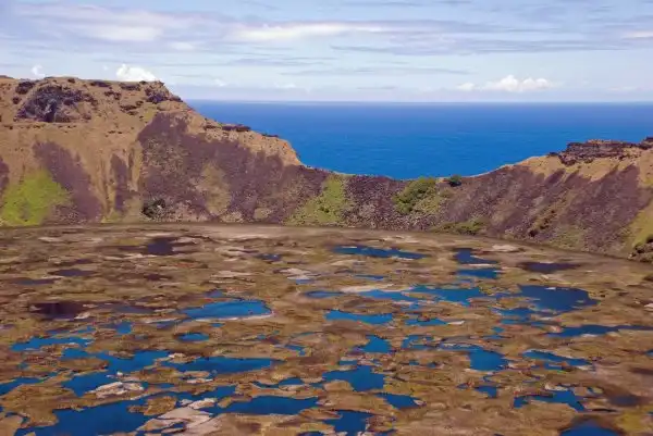Остров Пасхи полон загадок. Повсюду на острове можно увидеть входы в пещеры, каменные площадки, желобчатые аллеи, ведущие прямо в океан, огромные статуи, знаки на камнях.