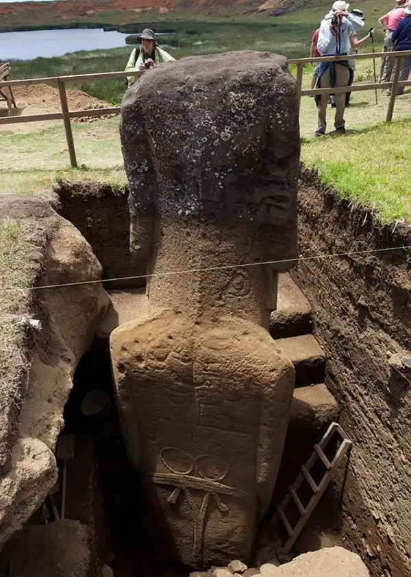 Колосс (высота 6 м) после раскопок Остров Пасхи (по: Хейердал, 1982)