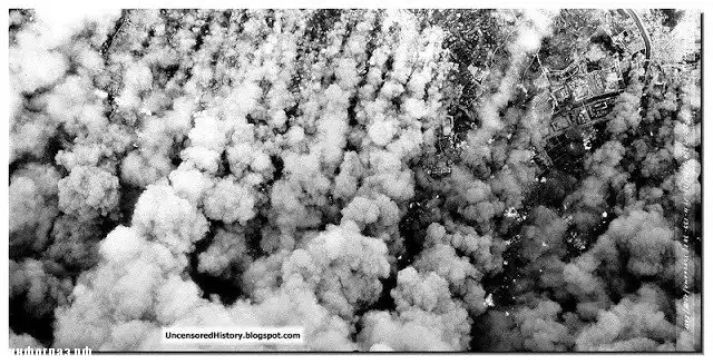 Напалм – это смесь нафтеновой и пальмитиновой кислоты, которая добавляется к бензину в качестве загустителя. Это даёт эффект медленного воспламенения, но долгого горения. При горении выделяется едкий чёрный дым, вызывающий удушье. Напалм практически невозможно тушить водой. Этой вязкой жидкостью, почти студнем, заполняют герметичные емкости со взрывателями и сбрасывают на объект поражения. Дома в городе стояли плотно, напалм горел жарко. Оттого огненные русла, оставляемые бомбовыми потоками, быстро слились в единое море огня. Воздушная турбулентность подстегнула стихию, создав огромный огненный смерч.