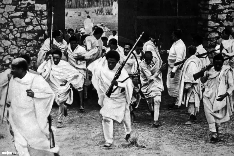 В 1867-1868 гг. эфиопская армия была значительно потрепана английским экспедиционным корпусом, высадившимся в Эфиопии в ответ на арест нескольких британских подданных. Разумеется, двухтысячный английский корпус нанес эфиопской армии серьезное поражение. Император покончил с собой, но англичане колонизировать страну не стали – ограничились уничтожением артиллерии эфиопской армии и захватом императорской короны в качестве трофея. В 1875-1884 гг. Эфиопия с переменным успехом вела войну с Египтом, в 1885 – с суданскими махдистами. Во второй половине 1880-х гг. колонизацию прибрежных красноморских территорий Эфиопии начали итальянцы. Молодая Италия, стремясь поскорее ухватить свой кусок «африканского пирога», разделяемого западными державами, обратила внимание на побережье Красного моря – важные в стратегическом и экономическом отношении порты. В результате противостояния Эфиопия в 1889 г. признала итальянский суверенитет над прибрежным регионом – Эритреей.