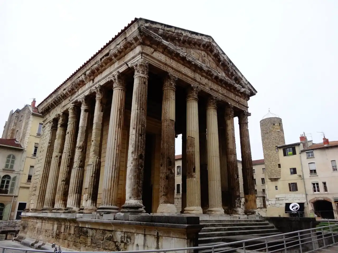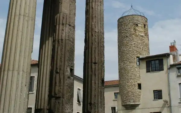 Вьен окружён высокими холмами. Это один из самых богатых на памятники античности городов Франции. Наиболее известна среди них остроконечная пирамида неизвестного предназначения, которую в старину принимали за гробницу Пилата. В 1860 году первоначальный облик был возвращён храму Августа и Ливии, построенному на заре христианской эры и позднее переоборудованному в церковь. Во время революции в этом «преторианском дворце» проводили свои собрания якобинцы. Разрушенный амфитеатр на 13 тысяч зрителей лежит на склоне горы Пипе.