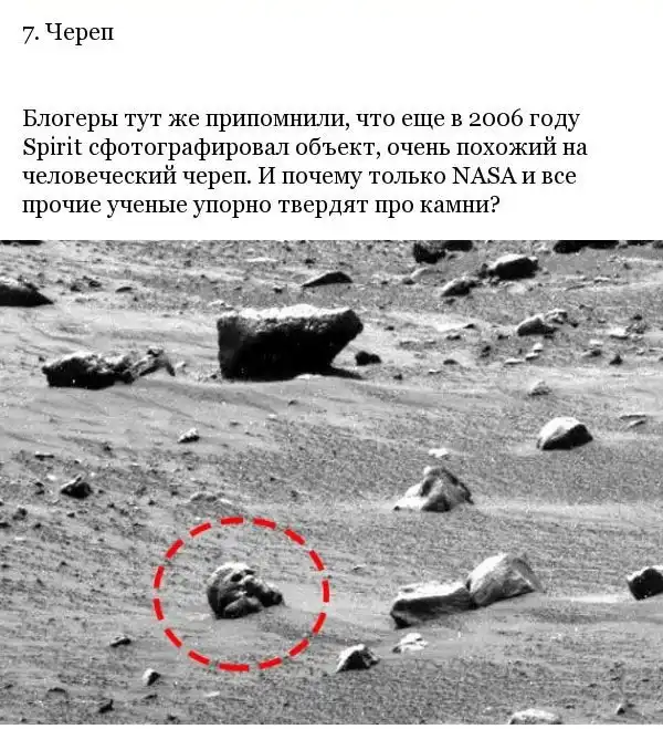 Хм.. судя по фото, каменное лицо находится на прямоугольном фундаменте (на втором "разоблачающем" фото очень хорошо видно). А на фотках где бедренная кость и пончик, так вообще квадратной плиткой земля вымощена.