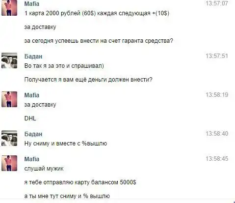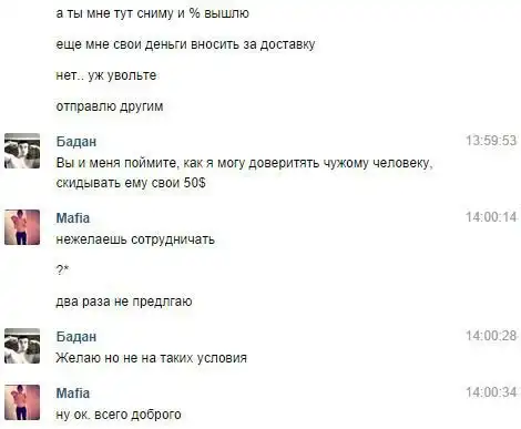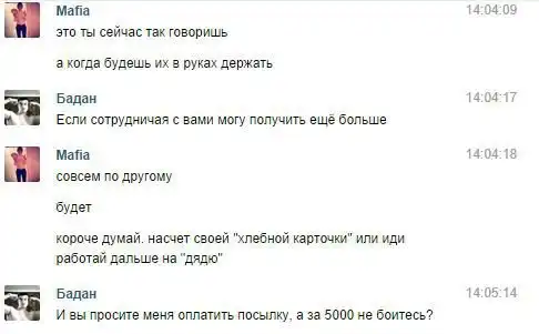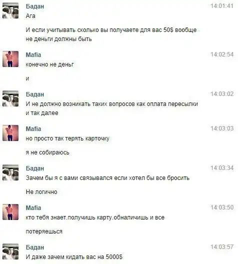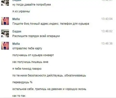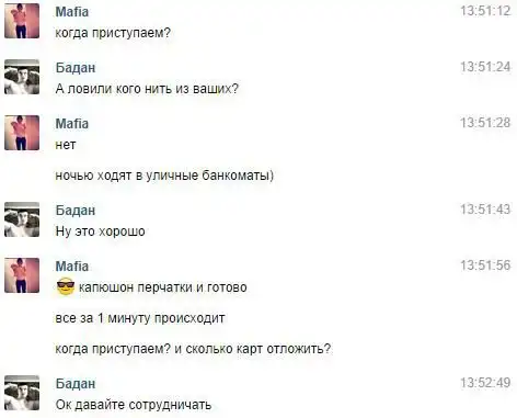 Пишет автор:Однажды ко мне в друзья добавился человек с именем Mafia Mafia, и предложил мне зарабатывать приличные деньги, на съеме денег из банкомата. Интересны ваши мысли в комментах. Извините за орфографию.