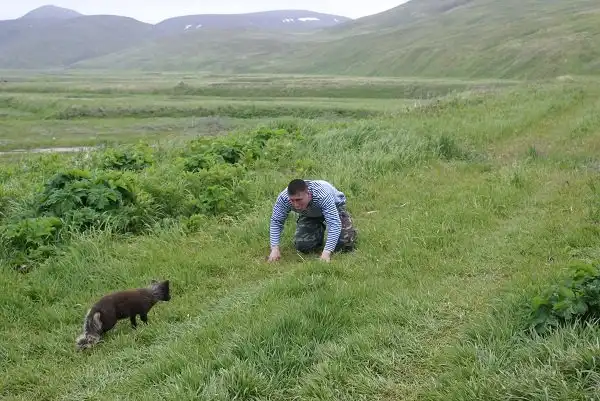Песцы иногда появляются у посёлка, а «в острове» (местное выражение) могут бежать рядом с громыхающим ГТС или автомобилем, ну это в основном молодые или без страха, только приподняв голову, провожать взглядом, даже не поднявшись с лёжки в нескольких метрах от проезжающего транспорта. На кордонах или зимовьях живут под избушками иногда весь сезон рядом с инспекторами или научниками, кормясь остатками с кухонного стола.