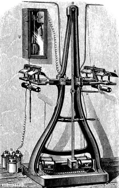 Телеграфная линия замыкала в единую электроцепь стержень, размещенный со стороны приема, и иглу – со стороны передачи, параллельно производилось заземление медных дугообразных пластинок.