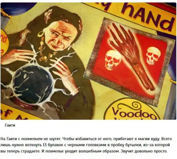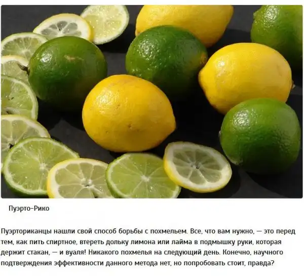 Как известно, алкоголь имеет абсолютно одинаковое воздействие на человеческий организм, причем независимо от национальности и расы. И конечно же, одним из самых неприятных последствий употребления алкогольных напитков является - похмелье. Сегодня я хочу рассказать вам, как с синдромом похмелья борются различные люди в разных странах мира, и какие из рецептов являются действительно проверенными и действующими.