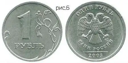 Рублёвые монеты 2003 года чеканились очень небольшим тиражом только СПМД. Это довольно таки редкие монеты России стоимость которых значительно превышает номинал (рис.6).