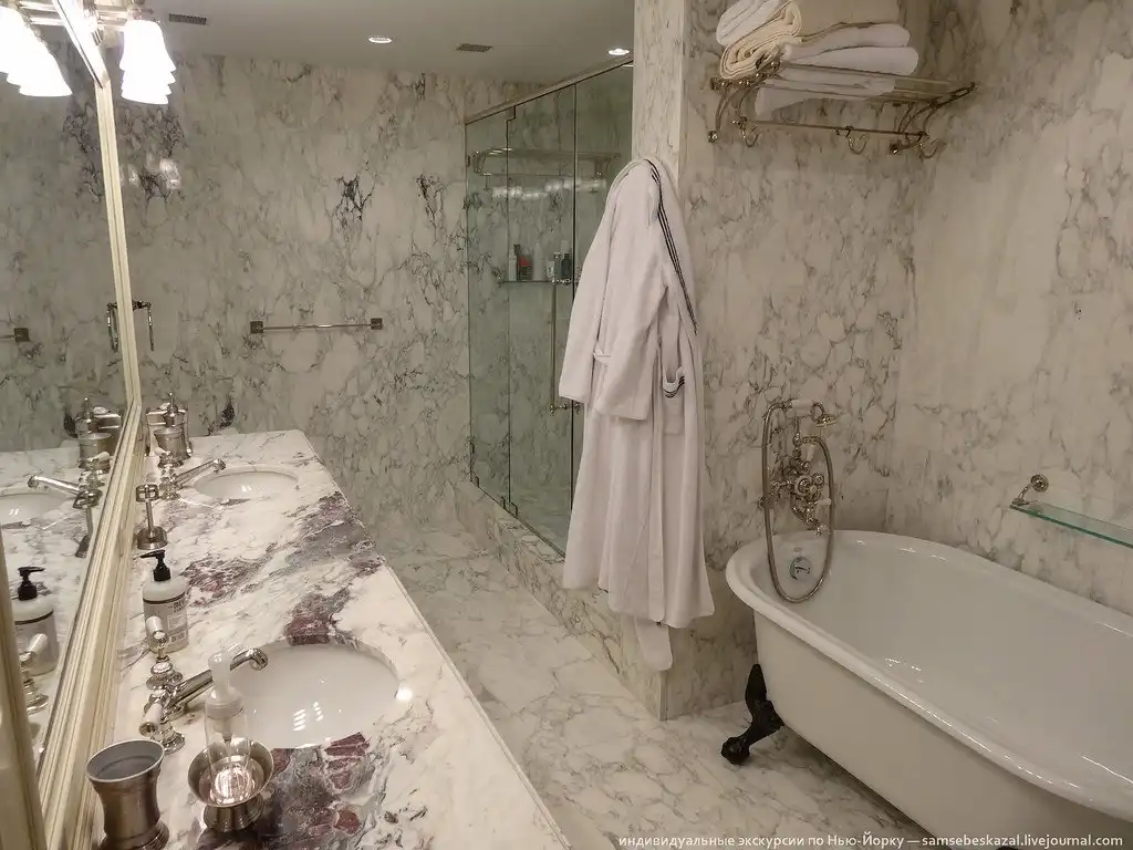 В 2011 году на 12 этаже Плазы за 48 миллионов долларов квартиру себе купил Игорь Крутой. Эта информация сразу же всплывает, как только говоришь, что ты из России. Причем по словам менеджера, который нас водил, он в ней не живет, а только останавливается во время визитов в Нью-Йорк. Я всегда удивляюсь таким вещам, особенно глядя на ежемесячные расходы и налоги. Купить-то конечно можно, но вот содержать потом...