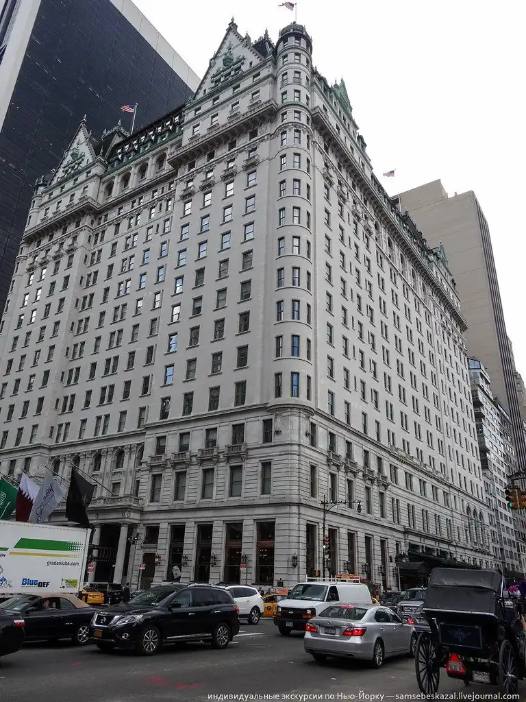 Краткая историческая справка, чтобы вы понимали о чем идет речь. Плаза это отель построенный в 1907 году на пересечении Пятой авеню и 58-й улицы. И не просто отель, а один из самых знаменитых в Нью-Йорке. В Плазе останавливались многие известные люди. Например, там жила четверка Битлз, во время их первого визита в США в 1964 году. Отель вы наверняка видели в фильме "Один дома 2". Герой Маколея Калкина, потерявшийся в Нью-Йорке, жил именно в Плазе. В холле он встретил тогдашнего владельца отеля - Дональда Трампа. Но с тех пор изменились и Маколей Калкин, и владелец, и сам отель.