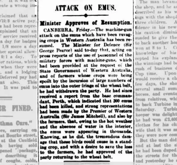 В 1932 году Австралия затеяла войну с эму (если кто не знает, это такие крупные австралийские птицы, похожие на страусов), которая вошла в историю под названием “Великая война с эму”. В ходе нешуточной военной операции выяснилось, что пулемёты в борьбе с птицами неэффективны.