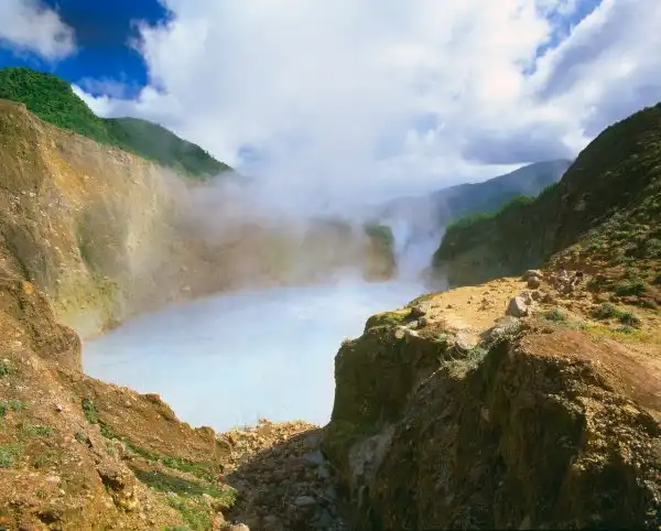 Кипящее озеро Бойлинг-лейк (Boiling Lake) расположено в национальном парке Морн-Труа-Питон, Доминика. Бойлинг-лейк представляет собой термальное озеро в длину и ширину примерно по 60 метров.