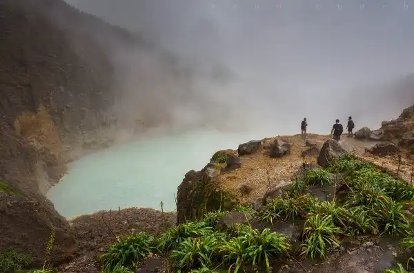Кипящее озеро является вторым озером по величине в мире и одним из чудес природы. Температура воды достигает 92 градусов, но в дождливые периоды может снижаться до 10. Купаться в этом озере категорически запрещено, потому что под водой могут бить струи горячего воздуха и даже лавы. Местные жители не рекомендуют ходить на озеро одним, без проводника. Озеро окружено горами со всех сторон, кроме одного места, где вода выливается и попадает в реки. Над изумрудными почти кипящими водами стелется пар содержащий большое количество серы.
