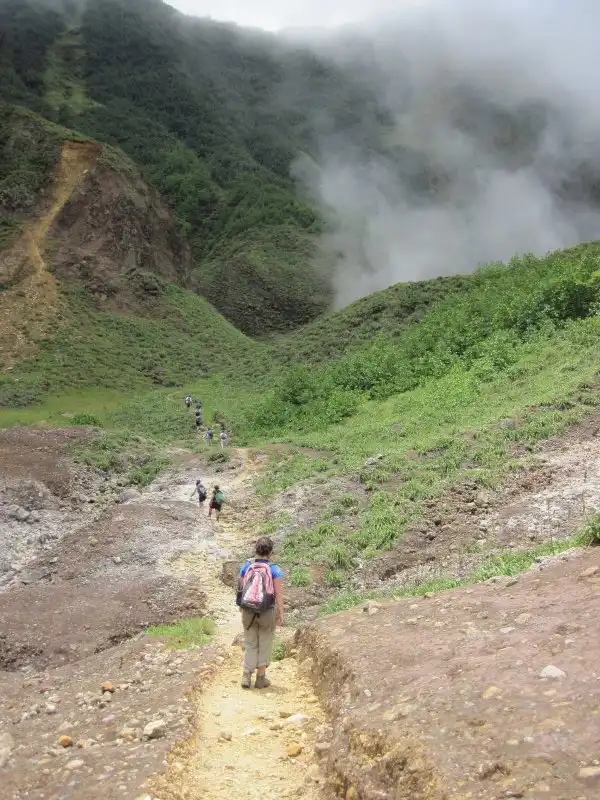 Дорога к Кипящему озеру — один из самых сложных и интереснейших горных маршрутов в Доминикане, и занять этот поход может целый день. Посему не стоит отправляться в такое весьма опасное путешествие самостоятельно, без проводника.