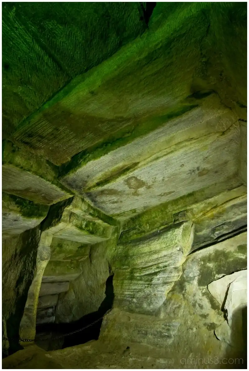 У одной из пещер с названием Хуанькси площадь достигает 4800 кв. м, а длина – 140 метров. Внутри находится просторный зал, колонных, бассейны и несколько небольших помещений по обеим сторонам пещерного тоннеля. Самая большая пещера получила известность как «подземный дворец». Ее размеры поражают: 12600 кв.м. Искусственное происхождение пещер подтверждают каменные мосты через речку, лестницы, переходы и большие колонны. Кроме того на поверхности потолков и стен остались многочисленные следы зубил. Еще один интересный вопрос: куда камнетесы убирали огромное количество камней и щебня? И как они умудрялись определить угол наклона внутренних стен так, что он точно совпадает с углом, на который наклонена внешняя поверхность горы? Какие технологии использовали древние для создания столь необычного интерьера? Как и чем освещалось внутреннее пространство?