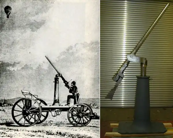 Крупповское противоаэростатное орудие Ballongeschutz образца 1870 года - казнозарядная нарезная пушка калибра 37 мм с ружейным прикладом.