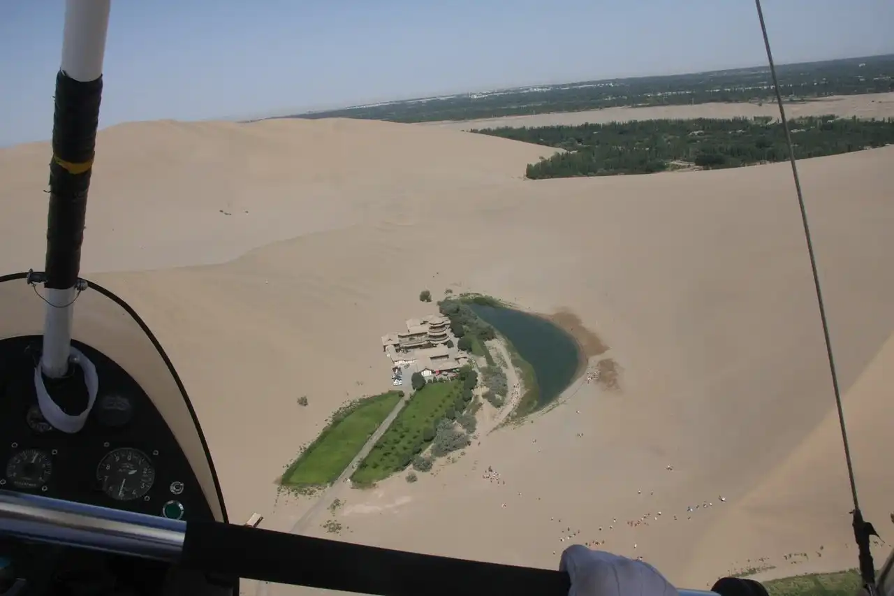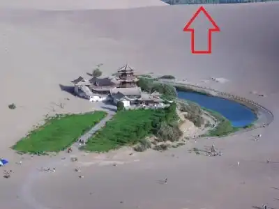 Представьте себе пустыню, что раскинулась от одного края горизонта до другого. Здесь нет ни единого деревца, лишь серые дюны сменяют друг друга. Однако что-то блеснуло вон там внизу в долине! Что это?! Может это галлюцинация? Нет, это оазис, центром которого как раз и является озеро Юэяцюань. Это настоящий райский уголок посреди безжизненной пустыни и это не мираж!