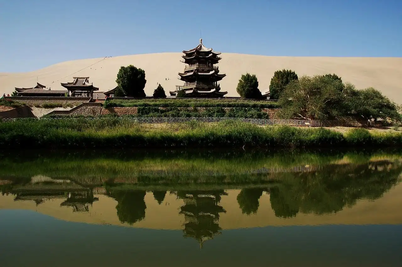 В пустыне неподалёку от города Дуньхуан (провинция Ганьсу, КНР) находится одно из самых необычных озёр на нашей планете – озеро Юэяцюань (кит. 月牙泉, пиньинь Yuèyáquán). Водоём имеет форму полумесяца и находится прямо посреди безжизненной пустыни!