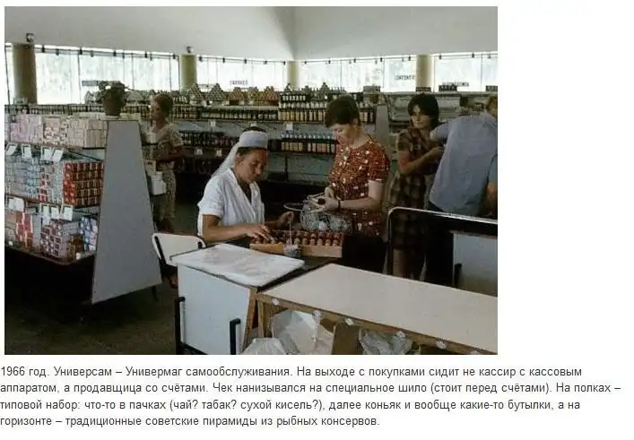 В семидесятых почти не было универсамов. Были, в основном, специализированные магазины - Хлеб, Молоко, Мясо, Колбасы, Рыба, Овощи и фрукты и т. п. Ну и один-два гастронома с несколькими отделами на микрорайон.