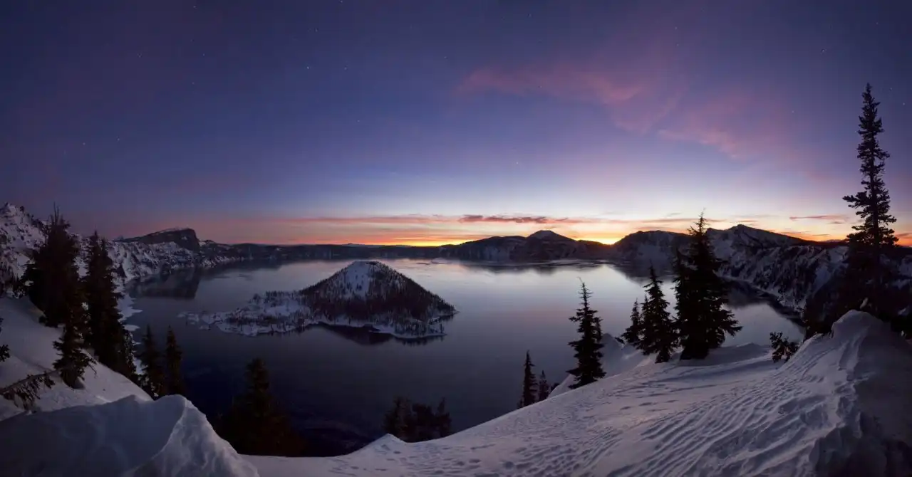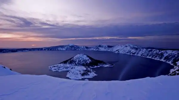 Национальный парк Озеро Крейтер находится на юге штата Орегон и был основан более века назад, двадцать второго мая одна тысяча девятьсот второго года. Озеро Крейтер довольно посещаемое туристами место – ежегодно здесь бывает до трехсот девяноста тысяч гостей.