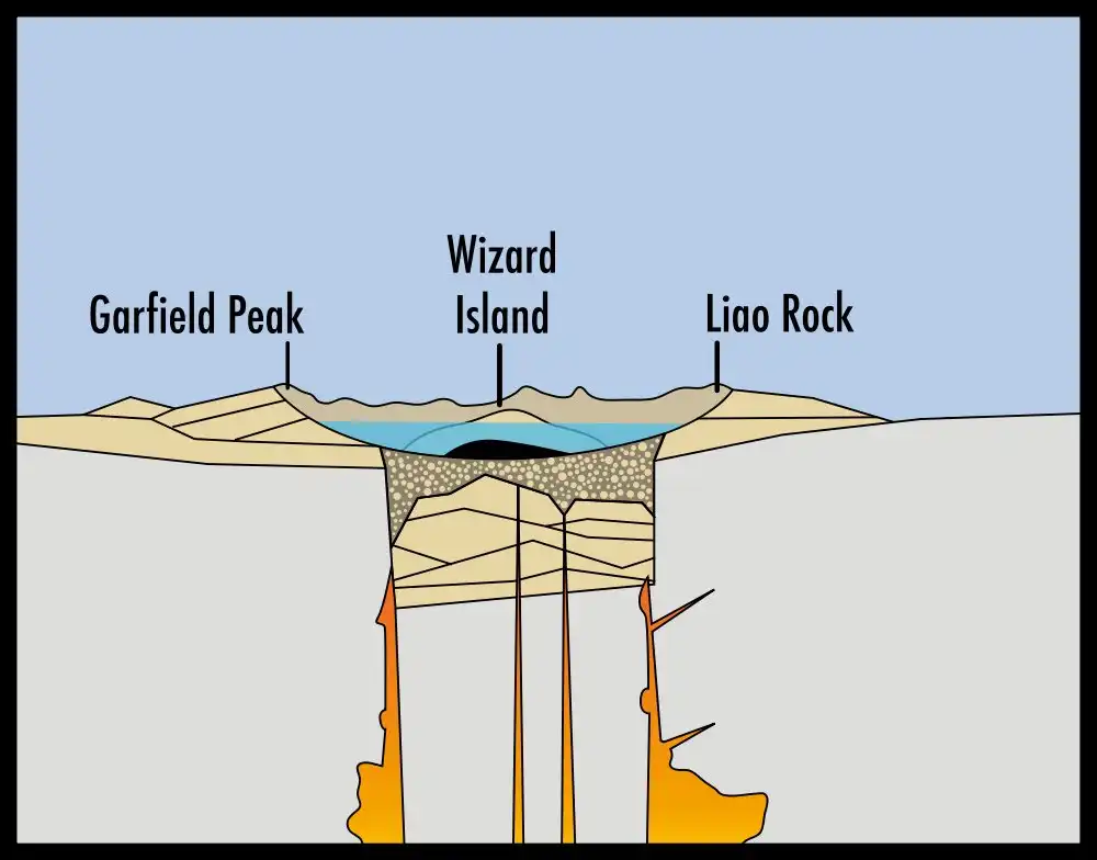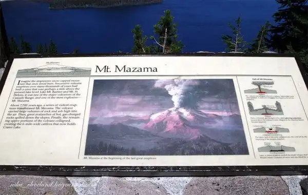 Вулкан Маунт-Мазама является частью вулканической дуги Каскадных гор. Его основными породами считаются риодацит, дацит и андезит. Погибелью вулкана принято считать его последнее извержение, которое было таким мощным, что привело к его погружению. В ходе последующих извержений образовались вулканические формы, близкие к современным, Конус Мерриам, Колдовской остров и риодацитный купол практически в самом центре платформы озера. Озеро же появилось, благодаря осадкам и горячим источникам, которые постепенно остывали. На данный момент ученые склонны считать, что в будущем возможно новое извержение Маунт-Мазама.