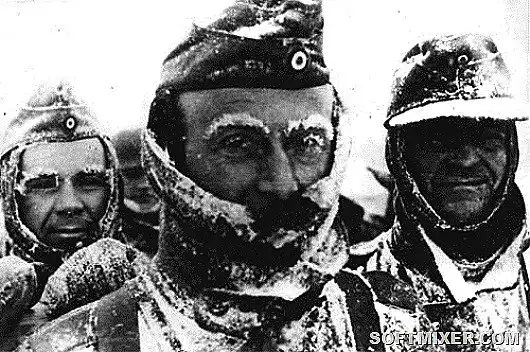 Ганс-Ульрих Рудель: Стоит декабрь и термометр опустился ниже 40-50 градусов ниже нуля. Облака плывут низко, зенитки свирепствуют. Мы достигли предела нашей способности воевать. Нет самого необходимого. Машины стоят, транспорт не работает, нет горючего и боеприпасов. Единственный вид транспорта — сани.