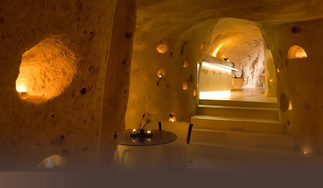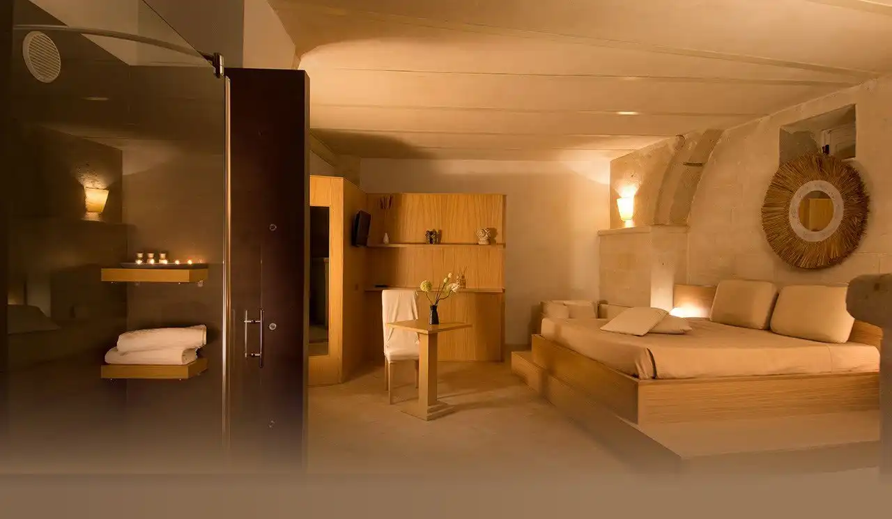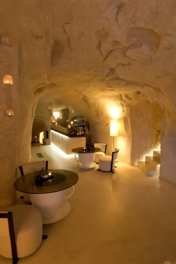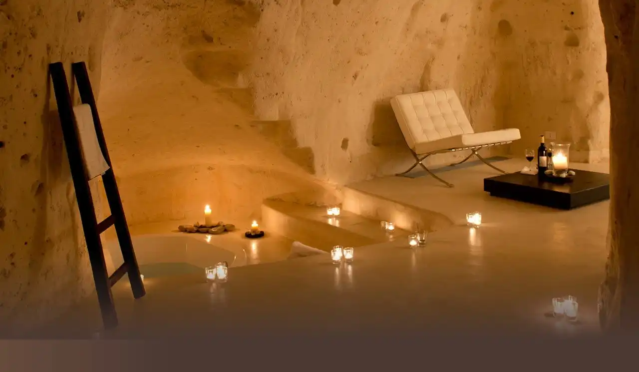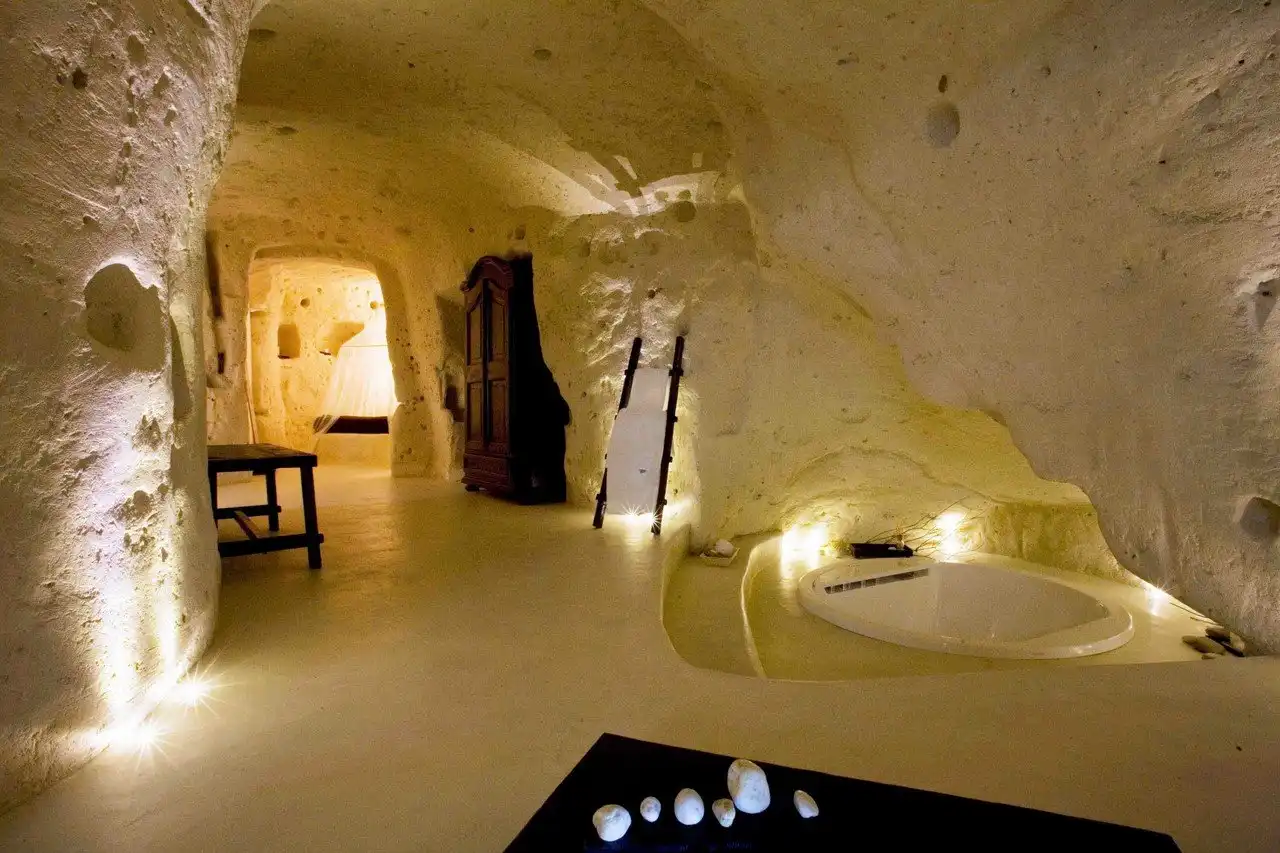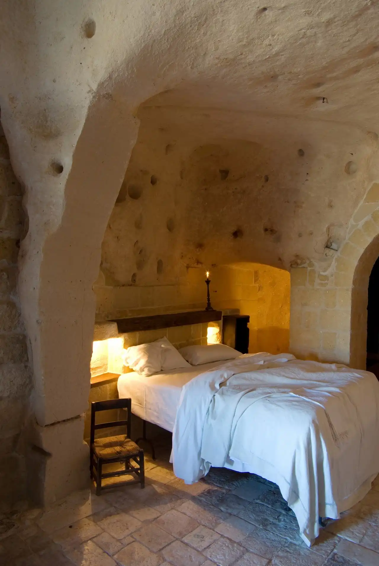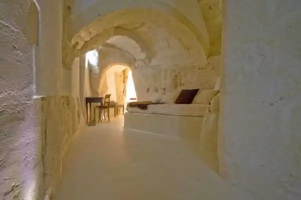 Необычный гостиничный город появился по соседству с городком Матера. Он разместился в средневековом пещерном поселении Сасси, где еще в 1948 году жили порядка 20 тысяч человек. В скалах за Матерой были выдолблены сотни пещер и 155 церквей. На данный момент все они находятся под охраной ЮНЕСКО. В этой связи кажется настоящим чудом и подарком для туристов то, что 18 пещер все-таки недавно перестроили в бутик-отели.