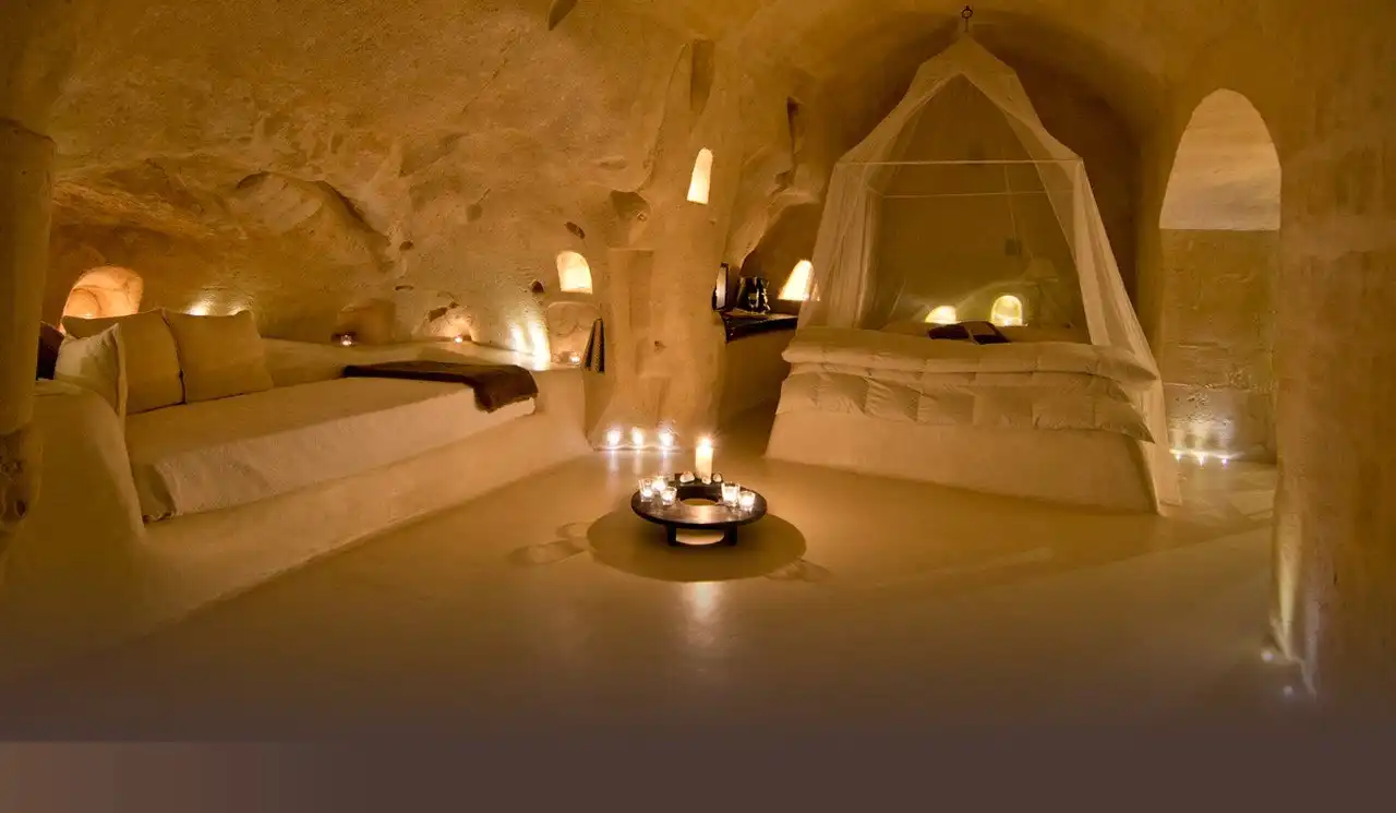 В пещерном городе можно провести и день, и ночь, а можно остановиться в домах-пещерах, где обустроено 18 комфортных номеров. Часть отеля находится в здании средневековой церкви.