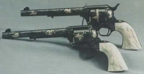 Украшенные богатой гравировкой, отделанные золотом и слоновой костью, они сами по себе — произведение искусства. На рукоятке надпись на русском: «Оружейная компания Кольта Генеральному секретарю Л. И. Брежневу». Вручил этот подарок Брежневу президент Джеральд Форд в ноябре 1974 года во время встречи во Владивостоке.