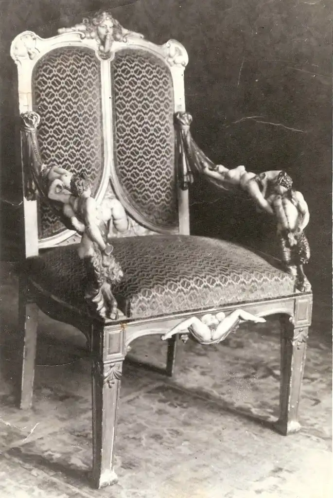 Во время Великой Отечественной Войны в одном из дворцов Царского Села группа советских солдат наткнулась на комнаты, оформленные в совершенно безумном эротоманском стиле. Одна из стен была сплошь увешана вырезанными из дерева фаллосами разной формы, вдоль стен стояли кресла, бюро, стулья, ширмы, украшенные порнографическими изображениями.