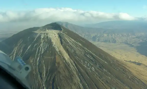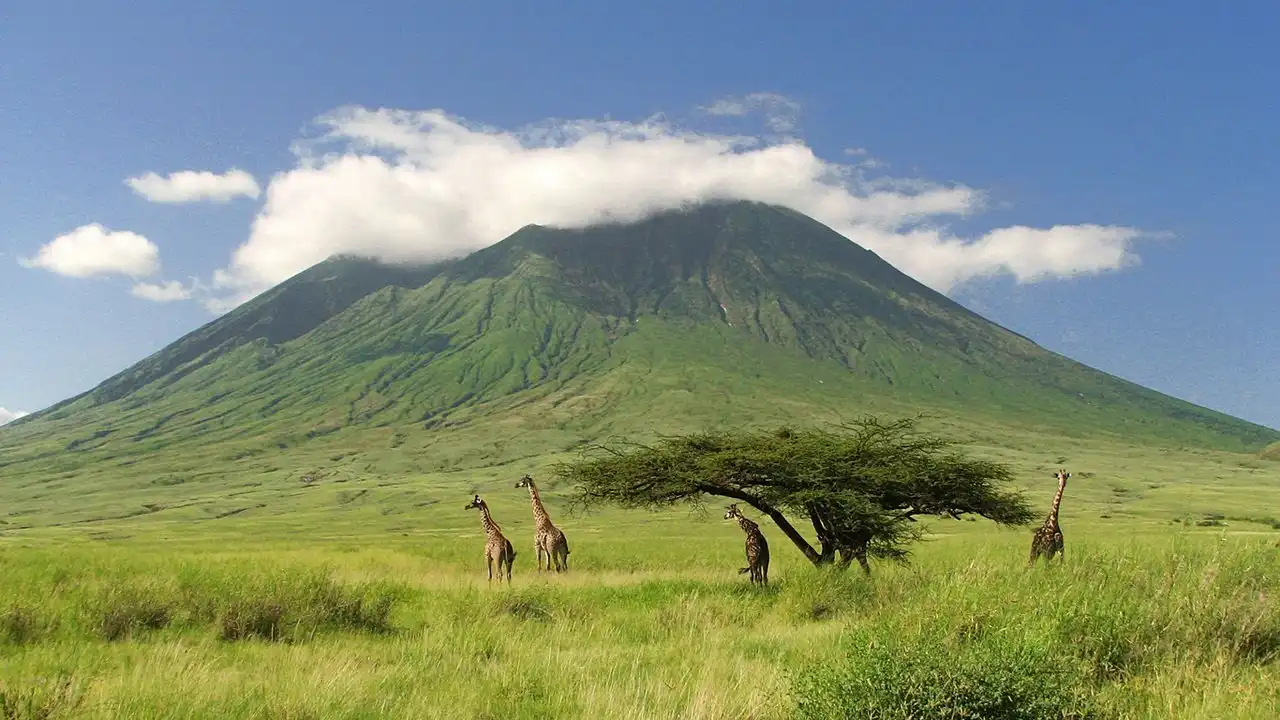 Многочисленные вулканы разбросаны по всему разлому великого африканского рифта длиной в 6000 километров, возрастом 30 миллионов лет. На вершине вулкана Оль Дойньо Ленгаи имеются белые потеки – следы лавы вылившейся из кратера. Оль Дойньо Ленгаи уникальный вулкан, такой лавы нет ни у какого другого вулкана мира. У подножия вулкана мирно пасутся жирафы. Оль Дойньо Ленгаи один из самых удивительных вулканов на планете. Восхождение на Оль Дойньо Ленгаи считается особенно трудным, учитывая его высоту 2962 метров и его крутые склоны.