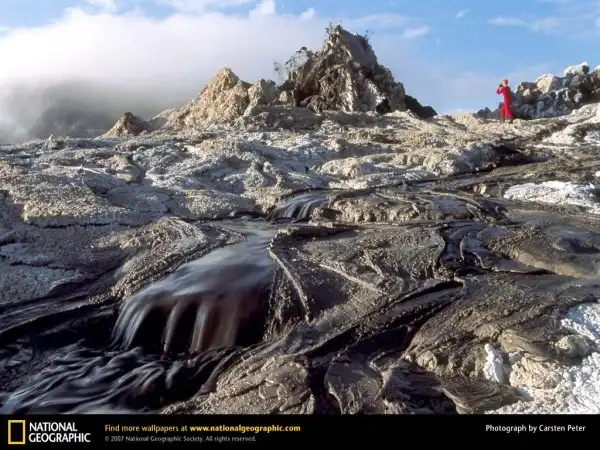 По цвету лавы можно определить, сколько дней лаве, это единственный вулкан на планете, который извергает такую лаву. На вершине слышится взрывы, что говорит о том, что вулкан является активным.