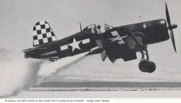 Пороховые ракеты оказались очень к месту, когда перед конструкторами была поставлена задача безаэродромного взлета. Твердотовливные ускорители устанавливались, в частности, на истребители «Ф-84» («F-84») и «Ф-100» («F-100»). Эти машины взлетали с рельсовых направляющих, установленных под углом к горизонту. При этом как только скорость самолета достигала минимальной требуемой, ускорители сбрасывались.