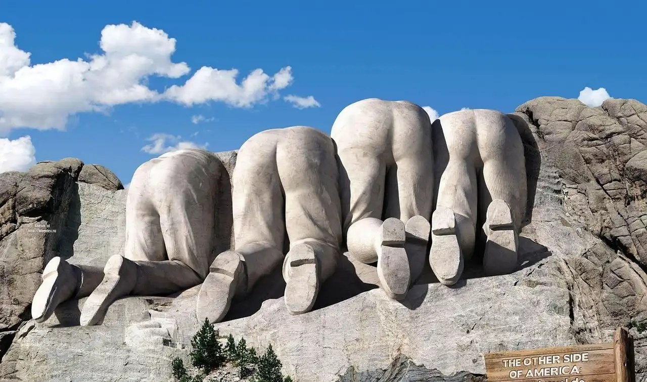 Существует мнение, что в основе Мемориала лежит тема расового превосходства. На горном склоне вырезаны изображения четырех президентов, правление которых характеризовалось наиболее активным отбиранием земли у коренных американцев. К тому же, автор монумента Борглум являлся активным членом Ку-клукс-клана — организации, члены которой утверждали превосходство белых людей над представителями других рас.