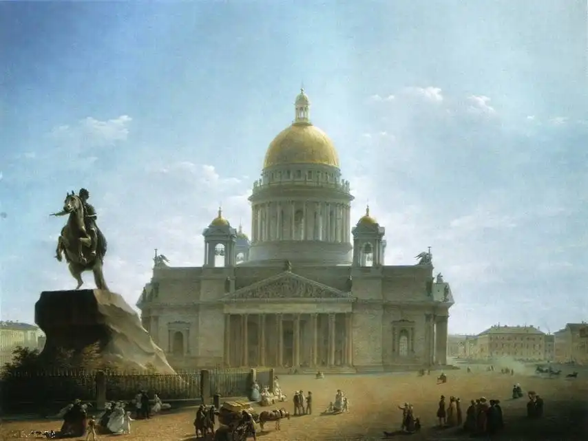 Воробьев М. Исаакиевский собор и памятник Петру I 1844 г.