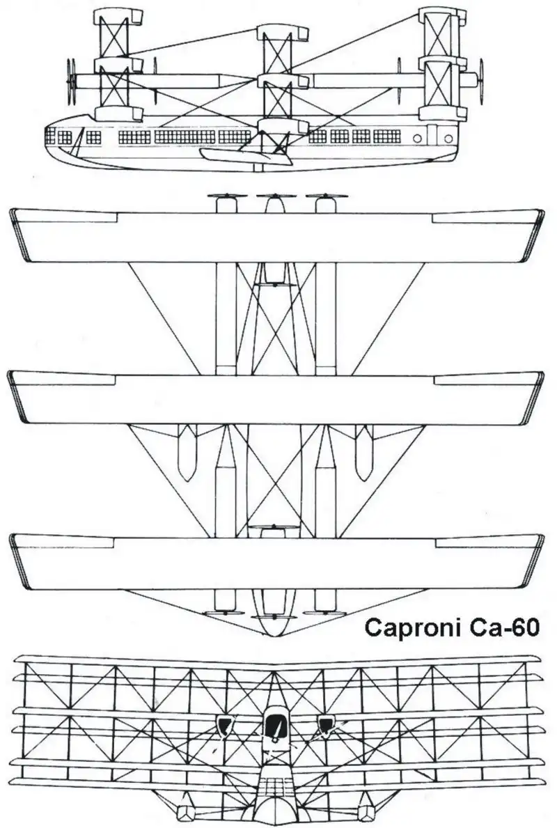 Caproni Ca.60 Noviplano, широко известный как Capronissimo, был прототипом трансатлантического авиалайнера. Он мог вмещать до 100 пассажиров.
