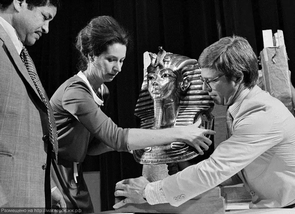Барбара Холл из Университета Чикаго и Йел Нилэнд достают сокровища Тутанхамона в Новом Орлеане 6 сентября 1977 года. (AP Photo)