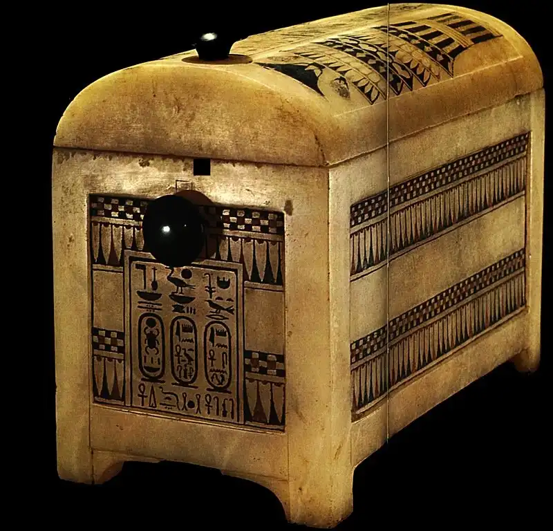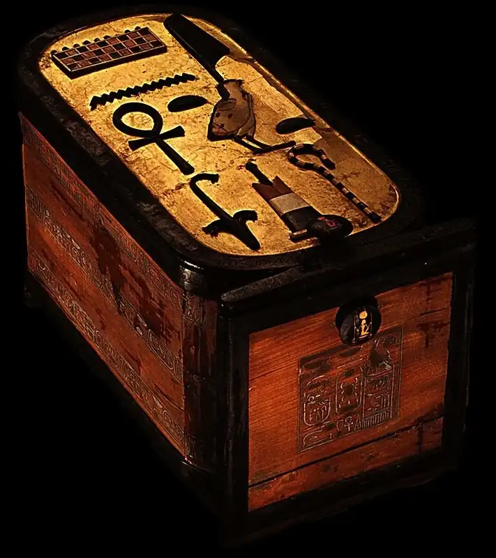 Позади усыпальницы искатели обнаружили вход в другую комнату. И она была полна чудес... Археологи назвали ее Сокровищницей. Там стоял ковчег для каноп фараона, охраняемый четырьмя богинями из золота, золотые колесницы, изваяние бога Анубиса с головой шакала, огромное количество ларцов с драгоценностями. В одном из них, открытом Картером, сверху лежал веер из страусовых перьев, выглядевший так, будто его положили туда вчера... Через несколько дней перья вдруг начали быстро ссыхаться, их едва успели законсервировать.