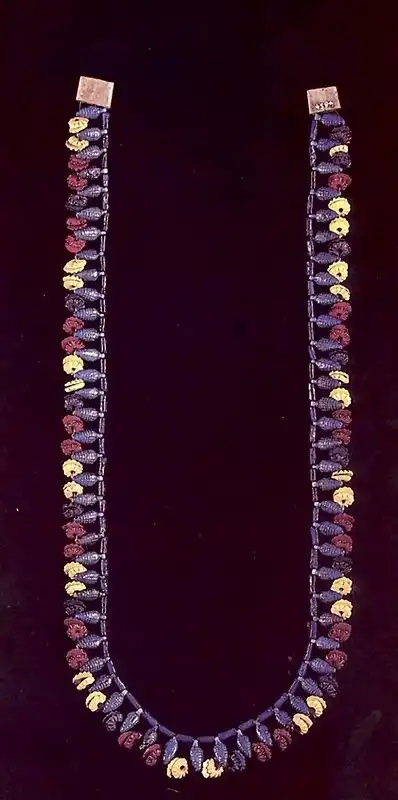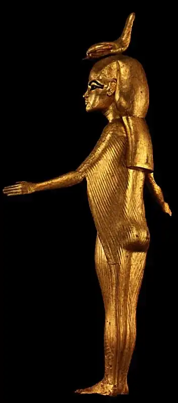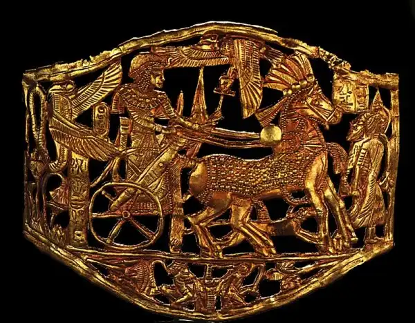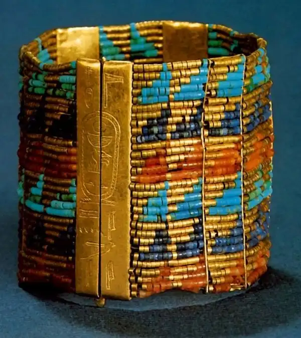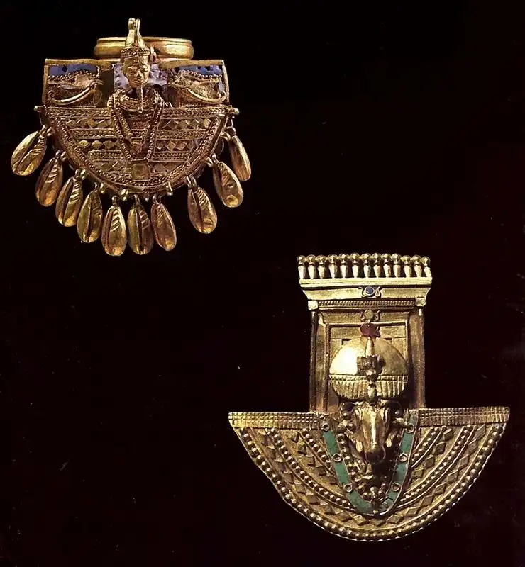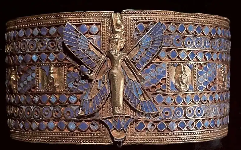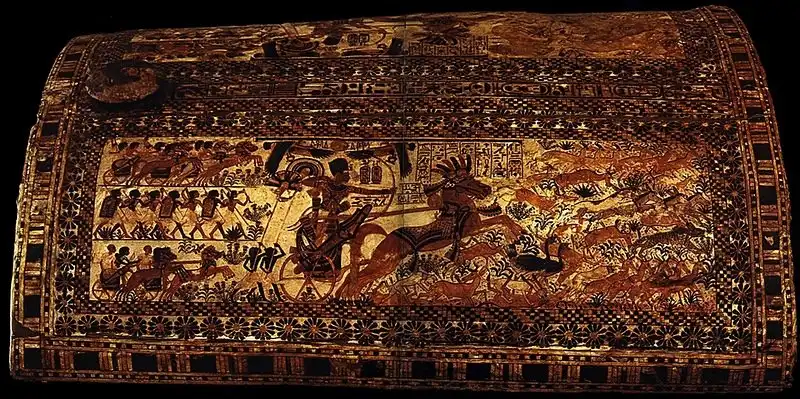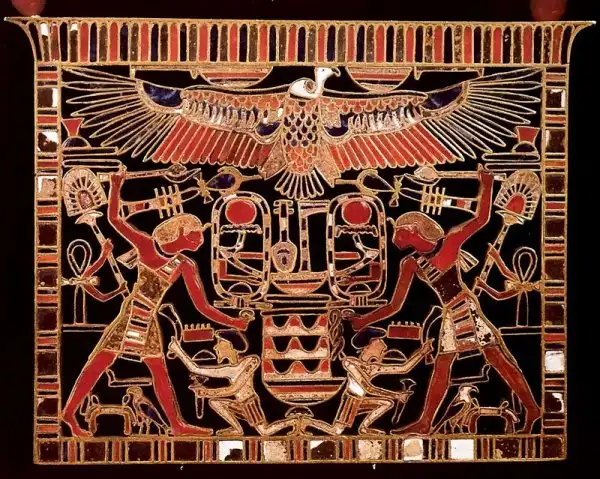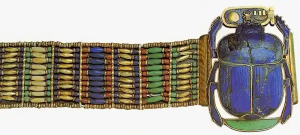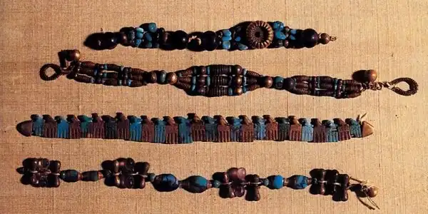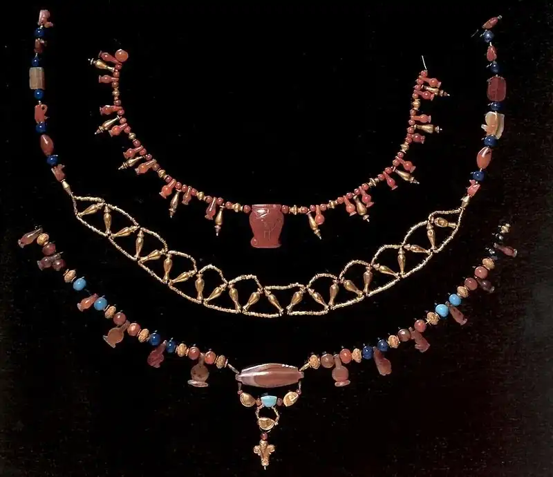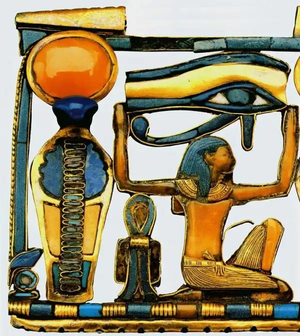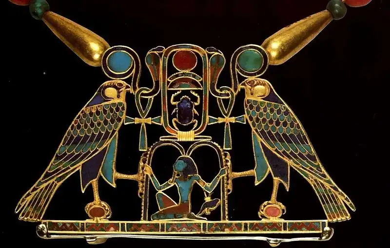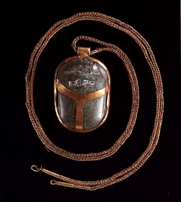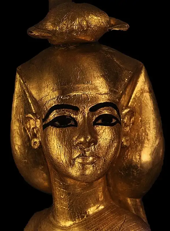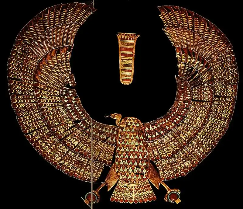 К удивлению ученых, внутри, под крышкой гроба, оказался еще один гроб, изображавший фараона богом Осирисом. Неоценима художественная ценность его, украшенного яшмой, лазуритом и бирюзовым стеклом, а также позолоченного. А подняв вторую крышку. Картер обнаружил третий гроб из толстого золотого листа, целиком копирующий фигуру мумии. Гроб был усыпан полудрагоценными камнями, на шее фигуры сверкали ожерелья и бусы разных цветов.